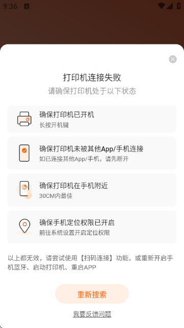 若连接失败,请重启打印机和手机蓝牙后重试。