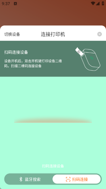 4.扫码快速连接(可选),若打印机机身带有二维码,可使用APP内的【扫码连接】功能,扫描设备二维码,一键完成配对,更加高效便捷。