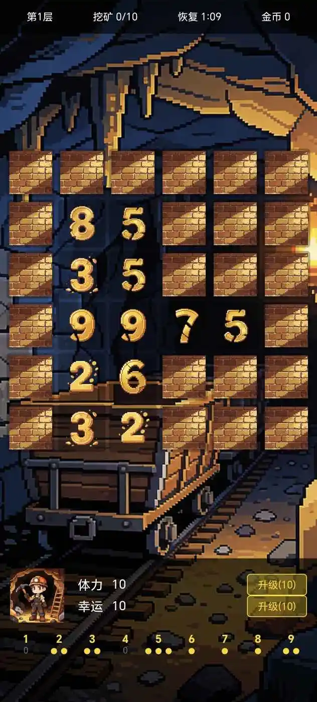 贪婪密码是一款需要动点脑子的手游,核心玩法就是在地下挖矿找数字,你得把挖到的1到9这些数字,按照特定规则凑成一组密码,才能打开通往更深处的门,每次下矿体力有限,挖几下就得上来,每一步都得琢磨,游戏里经常能碰到些意外事件,装满金子的袋子或者能砸开石头的榔头,这时候你就得选了,是稳一手直接拿点小奖励,还是赌一把玩个大的,赌赢了奖励翻倍爽歪歪,赌输了可就白忙活,整个过程有点像在玩是男人就下一百层那种感觉,但加了点数学谜题和运气成分,玩起来还挺上头。
