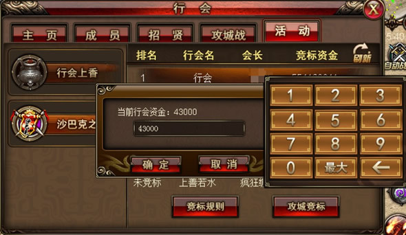 那么怎么竞标呢?游戏会在攻城战开始前开放沙巴克攻城战的竞标,此时玩家会长即可在行会界面中参与沙巴克攻城战的竞标,排行前四名的沙巴克行会取得沙巴克攻城战的资格。