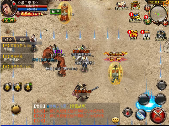 沙巴克传奇是盛大正版授权的复古传奇手游,完美复刻了端游中战法道三大职业、千人同屏攻沙以及装备随机爆落的设定,玩家可以选择扮演战士、法师或道士来对抗入侵玛法大陆的兽人大军。野外混战、沙城团战超有当年味道,不肝不坑不套路,空闲约上兄弟一起打宝攻沙,是目前最地道的 1.76 复古传奇手游。