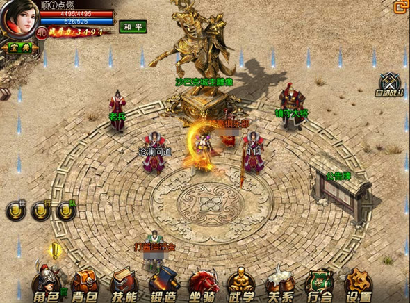 战法道分工明确,战士堵门抗伤冲阵型,法师火墙冰咆哮大范围清场,道士毒伤续航、召唤神兽扛伤害,经典铁三角配合作战。