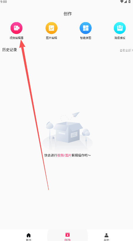 1、打开进入软件内部,点击“视频编辑器”开始创作。