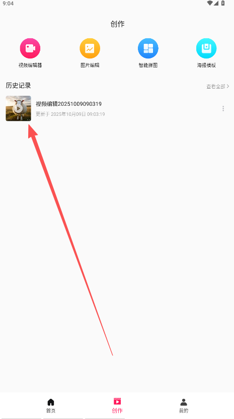 6、完整以上编辑操作以后,在创作区可点击查看刚才你所完成的视频编辑创作。