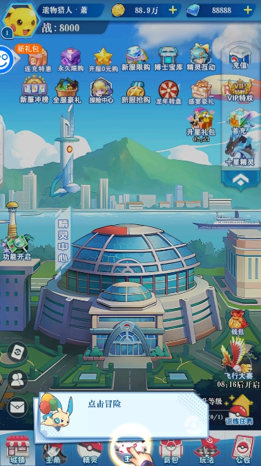 1、游戏主界面展示各种功能区域,玩家可在此查看精灵状态和选择作战模式。