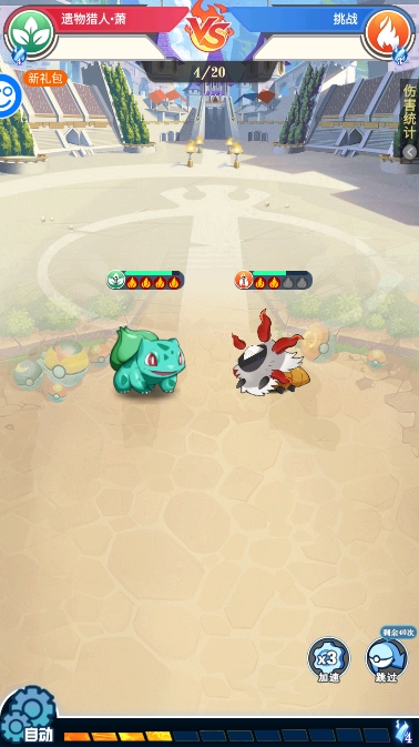 4、选定精灵后即可开始战斗,游戏支持自动挂机战斗,遇到强大敌人时可先强化精灵再出战。