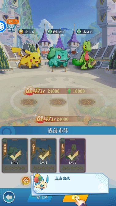 带领精灵队伍进行冒险闯关,通过战胜关卡敌人来获取经验、金币和稀有道具。