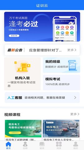证训云是一款实用的教育题库软件,具有强大的搜题功能,它的题库中的试题全真模拟真实的考试,可以成为各位考生学习乃至通过考试的好帮手,除了有其完整的考试题库与丰富的练习与做题模式外,证训云还提供了特种作业操作证考试查询入口和考试大纲。
