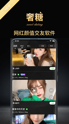 奢糖可以实现同城相亲交友的零距离体验,这款应用会根据用户所在的城市或地区,为他们推荐附近的心仪对象,用户可以通过浏览照片和个人资料来了解对方,并选择是否与其建立联系,这种同城相亲的方式,不仅节省了用户的时间和精力,还能够让用户更加方便地找到合适的对象,提高交友的成功率。