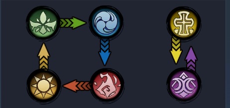 3、火、水、风、雷、光、暗六大阵营,存在属性克制与阵营羁绊。