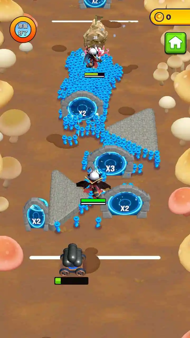 兄弟向前冲是一款考验反应与策略的手游,在快节奏的对抗中,你需要指挥自己的军团不断前进,战场上的倍增门可以快速扩充队伍规模,而各种障碍则会削减你的兵力,如何规划路线、规避风险是取胜的关键,收集资源能解锁更多样的大炮和士兵类型,从而组建更具特色的战斗阵容,每一次对决都是全新的挑战。