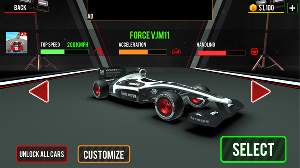 内置四个级别共10余辆可定制方程式赛车,每一种都将带来独一无二的驾驶感受。