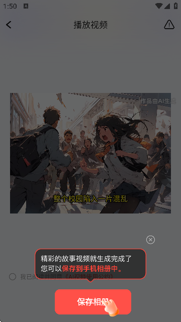 6、最后精彩的故事视频就生成完成了,您可以保存到手机相册中查看。