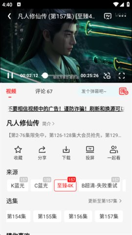 2.开始播放:进入详情页后,点击播放按钮,软件会自动选择最佳线路进行加载。