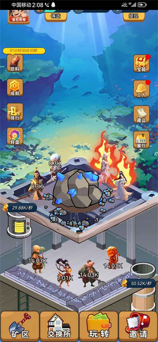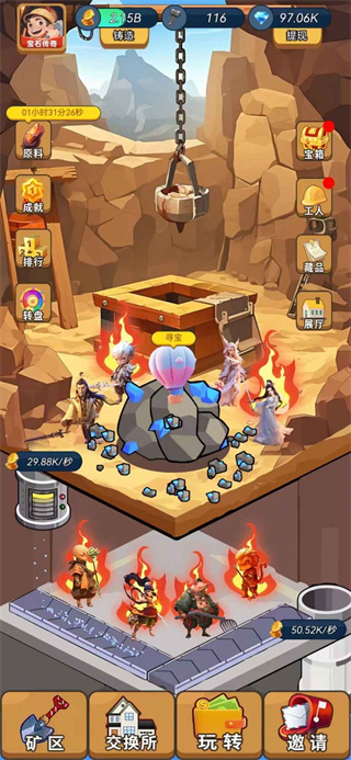 3、角色越稀有产出越多,各种线路自由选择,游戏里的每一个线路都可以指派,玩家们还可以通过开启宝箱获取大量的游戏奖励,游戏里还有很多的全新矿区可以探索,不同的矿区有着不同的矿物;