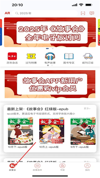 1、故事会板块,你可以订阅2025年全年的电子版,新用户还能享受VIP会员优惠,这里展示了最新的红绿版epub杂志,同时提供历年杂志和过刊特惠等服务入口;