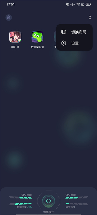 6、下方实时显示游戏CPU/GPU性能和信号强度;