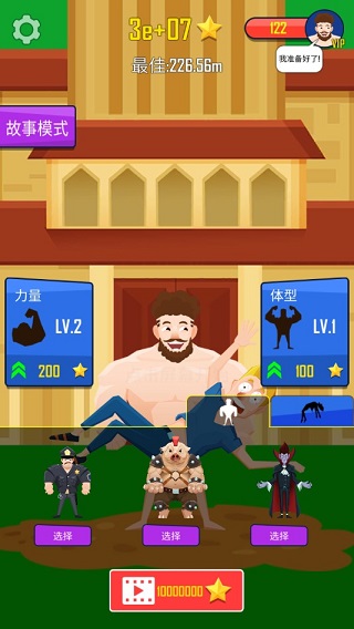 积累的星星可用于解锁新角色、购买道具,还能升级角色的臂力和体型。