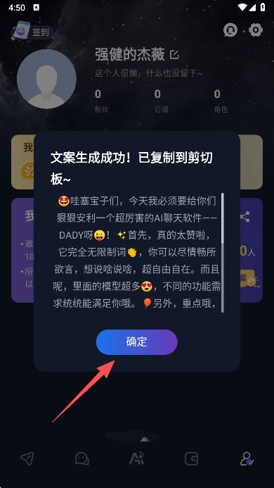 1、打开DadyAI软件,点击最下方中间的AI界面;