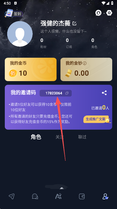 2、进入后,您就可以看到自己的专属邀请码了;