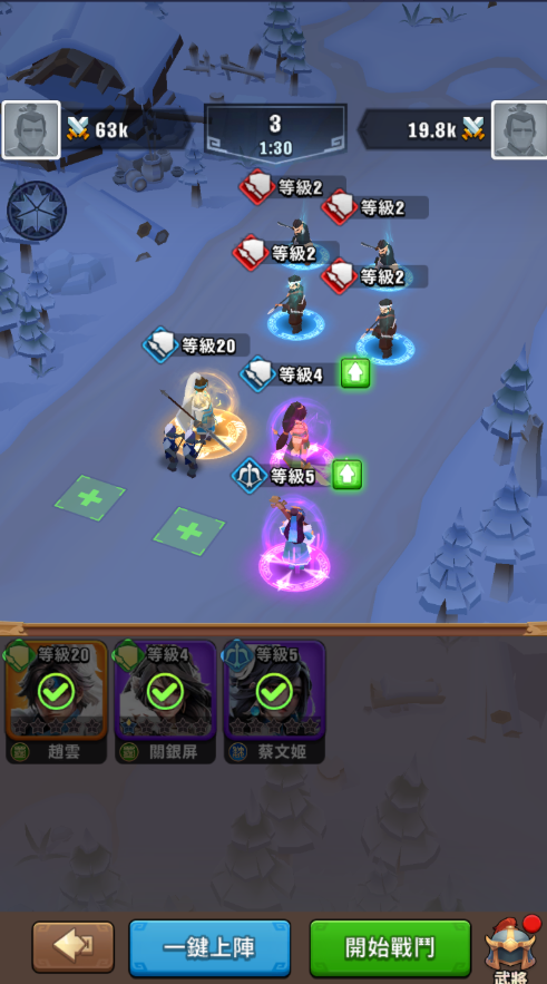 等游戏进程深入,慢慢收集姜维、刘备、赵云、诸葛亮、张飞这些强力武将,他们可是后期战力的大杀器。