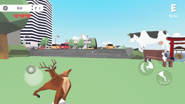 非常普通的鹿现代篇是一款角色扮演冒险游戏,玩家在游戏中扮演一只战斗力惊人的鹿,在游戏世界中自由闯荡,体验各种搞怪好玩的事情,比如像人一样站立、拿起武器攻击、甚至变身成摩托车。游戏的画风场景和人物都采用了精简的卡通风格,让玩家能够轻松识别游戏中的物品。本次带来的现代篇是以现代城市故事展开,玩家可以在城市里自由探索,与人类友好相处。