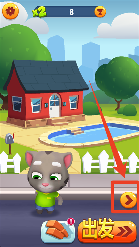1、刚开始我们只有一只汤姆猫,来到主界面,我们可以看到右边下方有一个箭头按钮,点击前往。