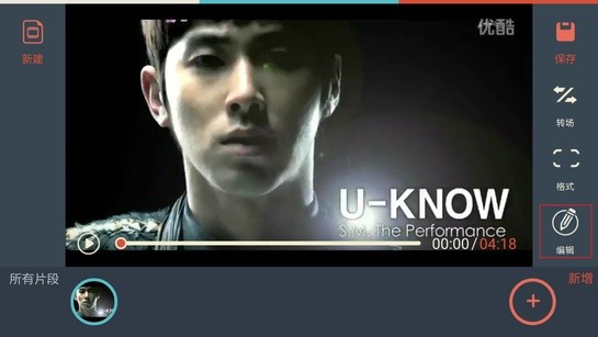 1、在视频编辑界面,点击右侧栏“编辑”按钮进入编辑界面。