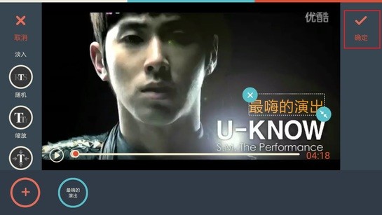 4、选中字幕样式后,单击屏幕中间打开小键盘,输入文字,选择字体及颜色,点击确定返回到字幕菜单。