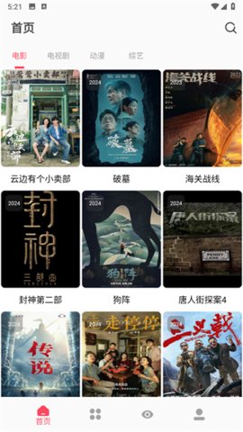 5.界面布局清晰:主要功能分区明确,寻找想看的影片或进行管理都很顺手。
