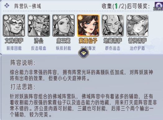 阵容组成:文殊菩萨 + 济公 + 唐三藏 + 紫霞仙子 + 地藏菩萨 + 普贤菩萨