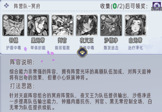 阵容组成:钟馗 + 黑无常 + 判官 + 夜叉王 + 沙悟净 + 白无常