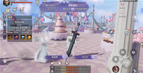 接下来就是重头戏了,新婚双方会随机撒喜糖、发红包,撒喜糖可以增加祝福值,触发全场奖励,而发红包则能够为在场的宾客发放随机钻石奖励!