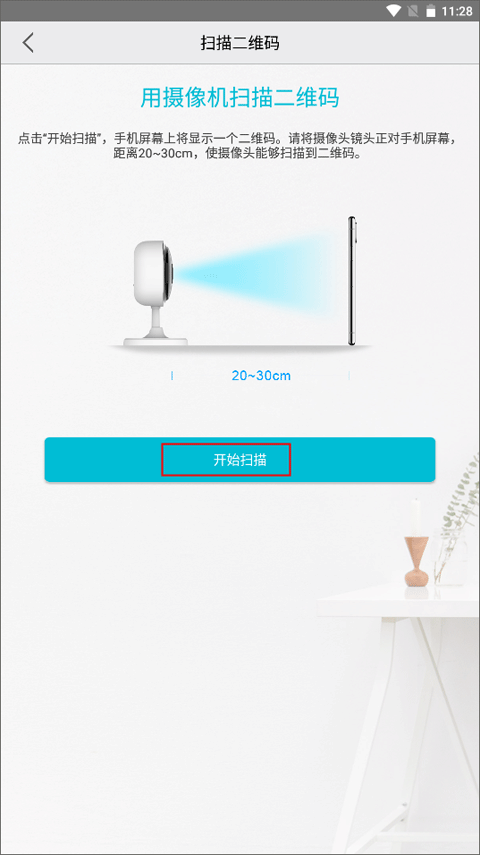 5、输入家庭WiFi密码,点击"开始扫描"生成二维码,将摄像头对准手机屏幕扫码,扫码成功后完成设备添加。