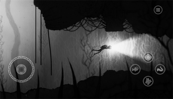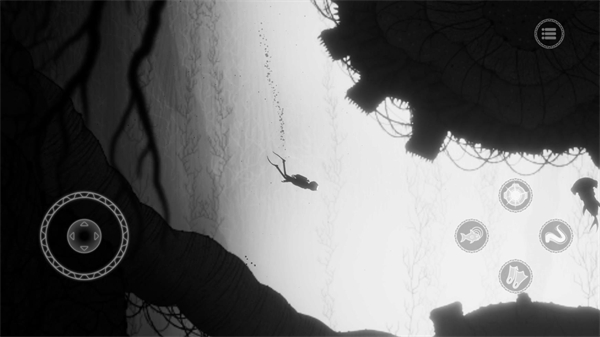移动控制:左侧虚拟摇杆控制潜水员方向;