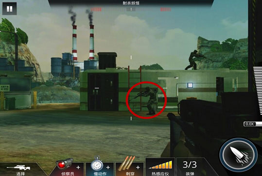 拉近你与敌人之间的视野距离之后,就要精确瞄准敌人,准备进一步的攻击。