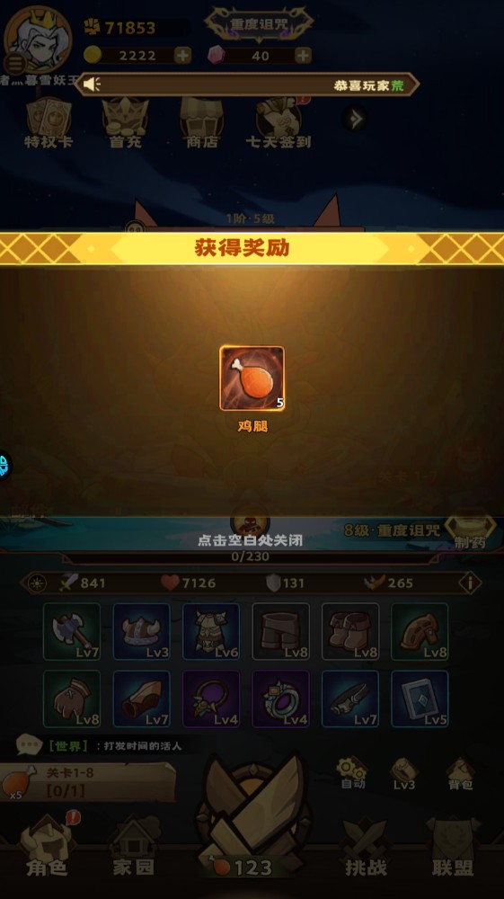 通过点击或自动挂机方式击杀怪物,获取金币、装备、武器等奖励,持续提升角色战力。