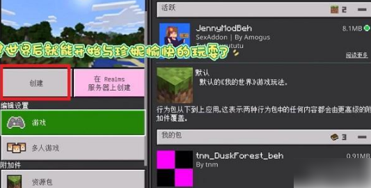 5、然后就是找到附加件,将资源包和行为包中的珍妮模组进行激活,激活之后就能开始游戏了。