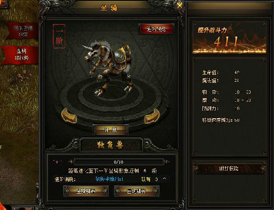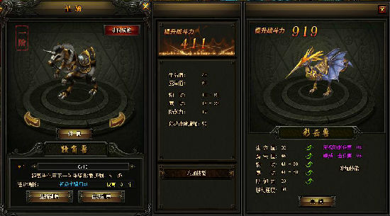玩家可以通过点击进阶预览来观察坐骑进阶之后的样子以及属性提升: