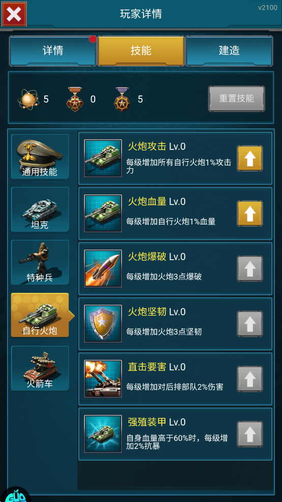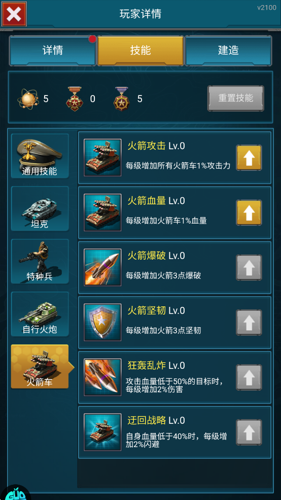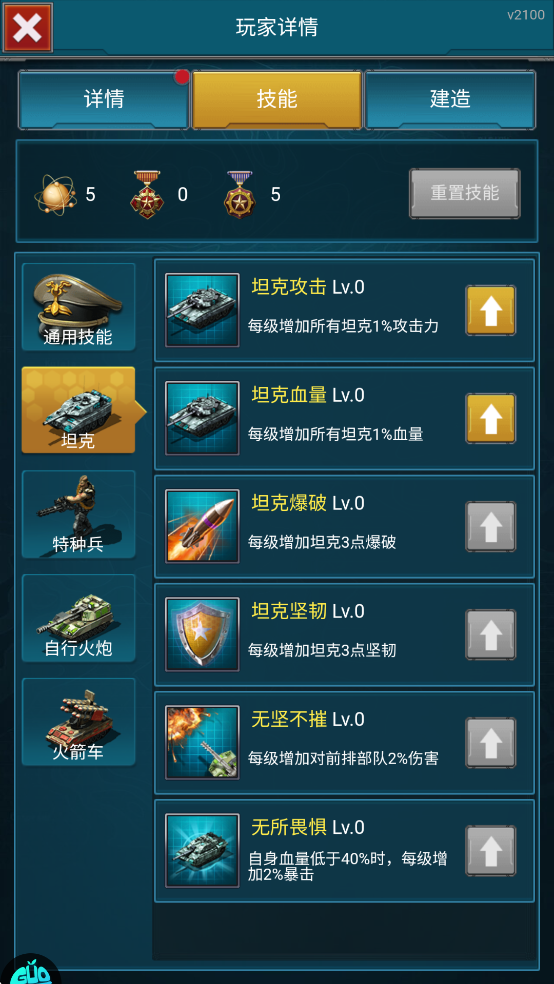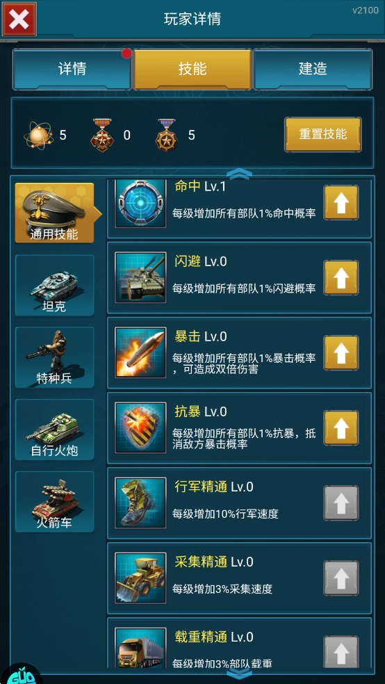 指挥官也可以通过升级自身技能,来提升战力。提升技能需要消耗技能勋章,技能勋章可通过战役胜利、战役箱子、军团捐献、军团副本等来获得,另外最直接的方式也就是在商城进行购买,总而言之,指挥官除了要多多升级坦克之外,别忘了自我提升哦。指挥官技能根据自己的部队情况选择升级哦。