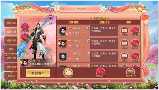 当然,单身狗的小编要怎么去找一个适合结婚的对象呢?这时候就要用到仙侣大厅咯