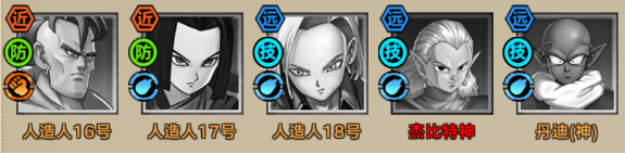 1、杰比特神+人造人16号+人造人17号+人造人18号+丹迪(神)