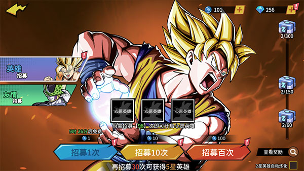 召唤神龙:集齐7颗龙珠可许愿,获得SSR角色、钻石、稀有材料。
