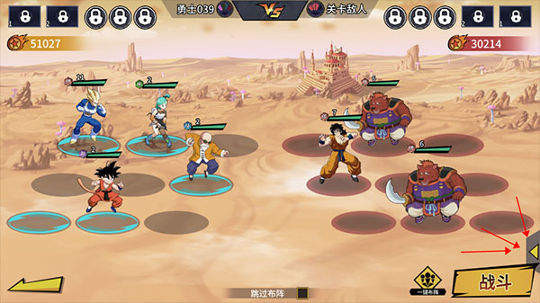 4、战斗开始前,先点击右下角安排上阵的英雄;