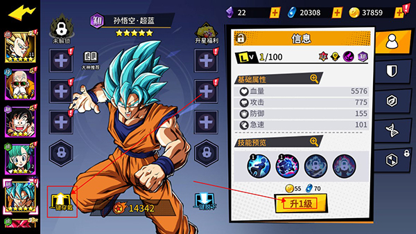 Top1方案:超赛神悟空+邪念波+超赛神贝吉塔+孙悟空·超蓝+自在极意功悟空