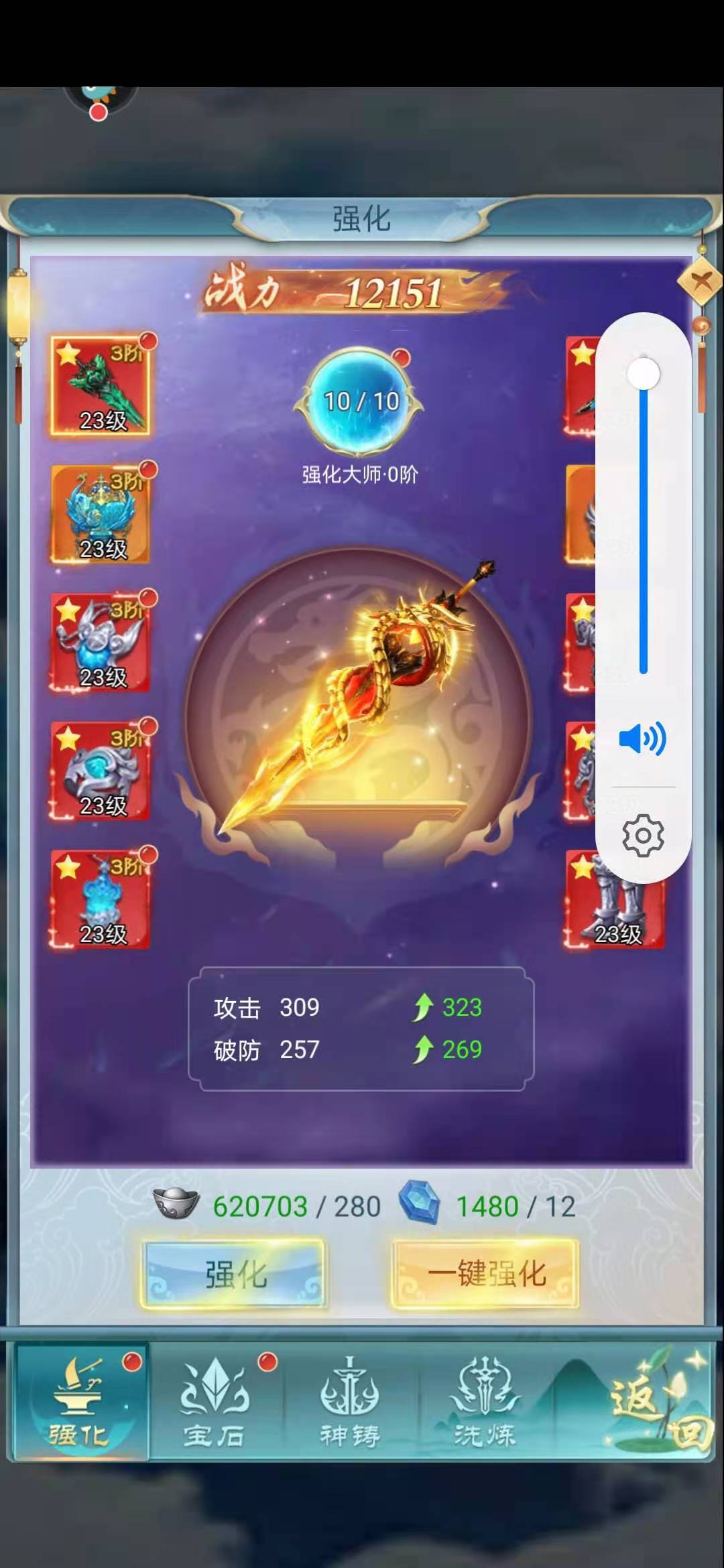平民玩家可以在装备栏中找到强化专页,然后选择需要强化的装备进行强化,可以选择一件强化,想达到几十级之后,银元宝基本上不用考虑,基本上就是用不完,那么通过强化装备,就能让游戏角色有超强的战力。