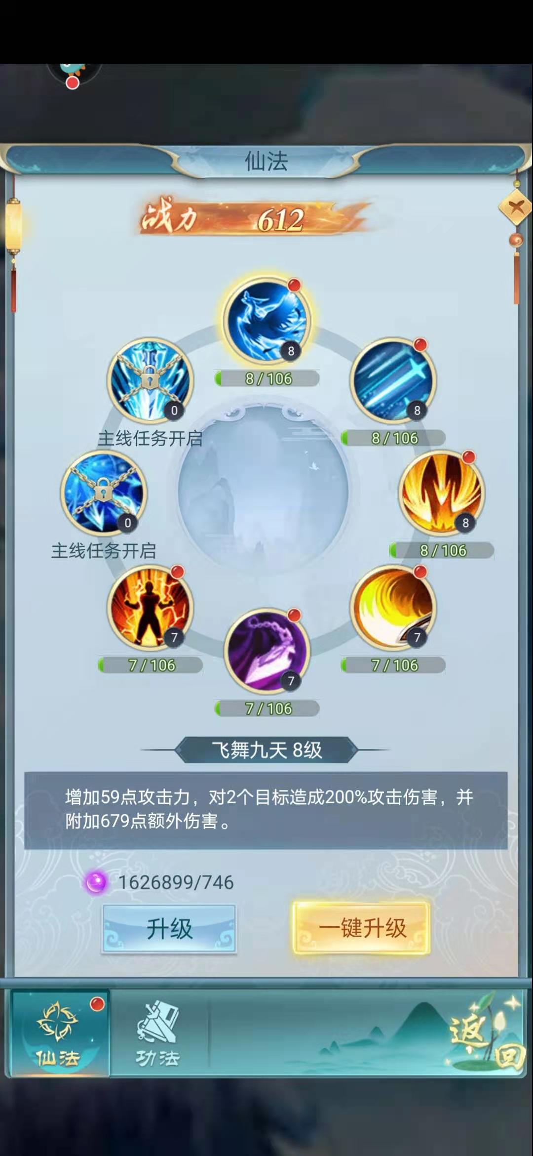 这就需要提升任务等级,前期可以学基础的仙法和功法。大部分仙法和功法都是有暴击和群体伤害功能,提升了这一块的素质,就能够快速帮助玩家清理野怪和小兵。还有就是打大boss的时候,仙法的好处就出来了,基本上都是暴击破防在打击对面Boss,如果不去叠加属性,那么打副本关卡boss的时间就要久一些。