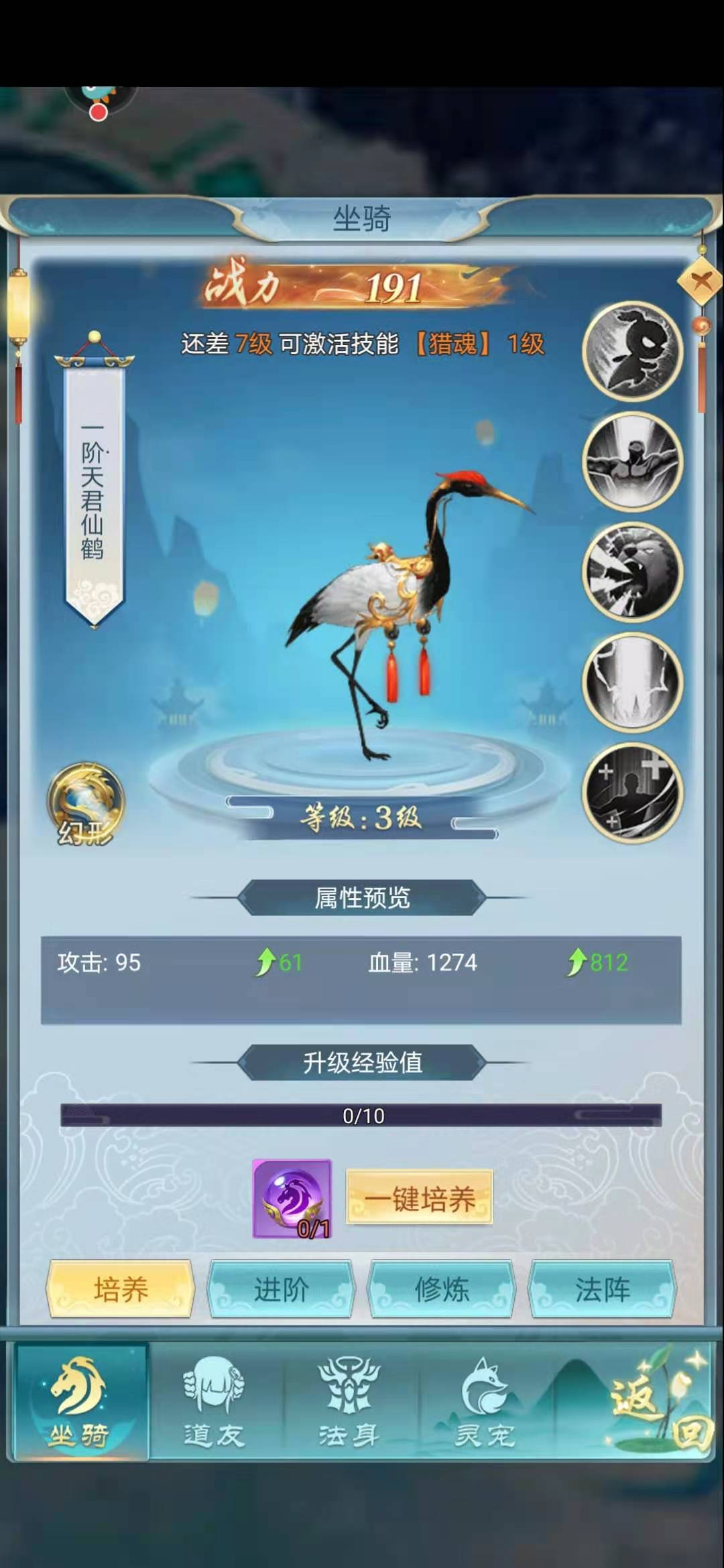 每个坐骑都有自己的技能,给坐骑升级解锁和升级技能能大幅度提高坐骑的战斗力。