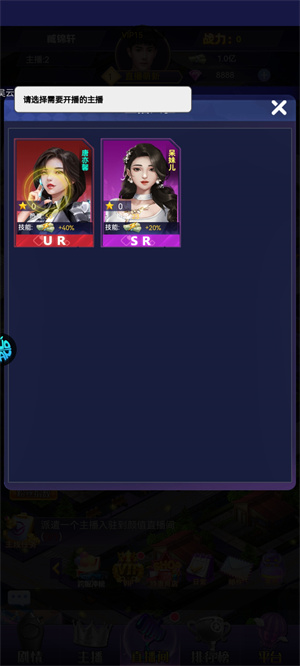 5、选择技能高一点的主播上场即可