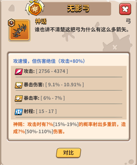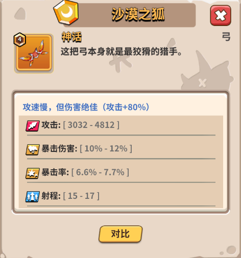 【沙漠之狐】前期没有无影的情况沙狐算是最好的弓了,没有其他的原因因为它的面板会比普通无神赐的弓箭要高哦~